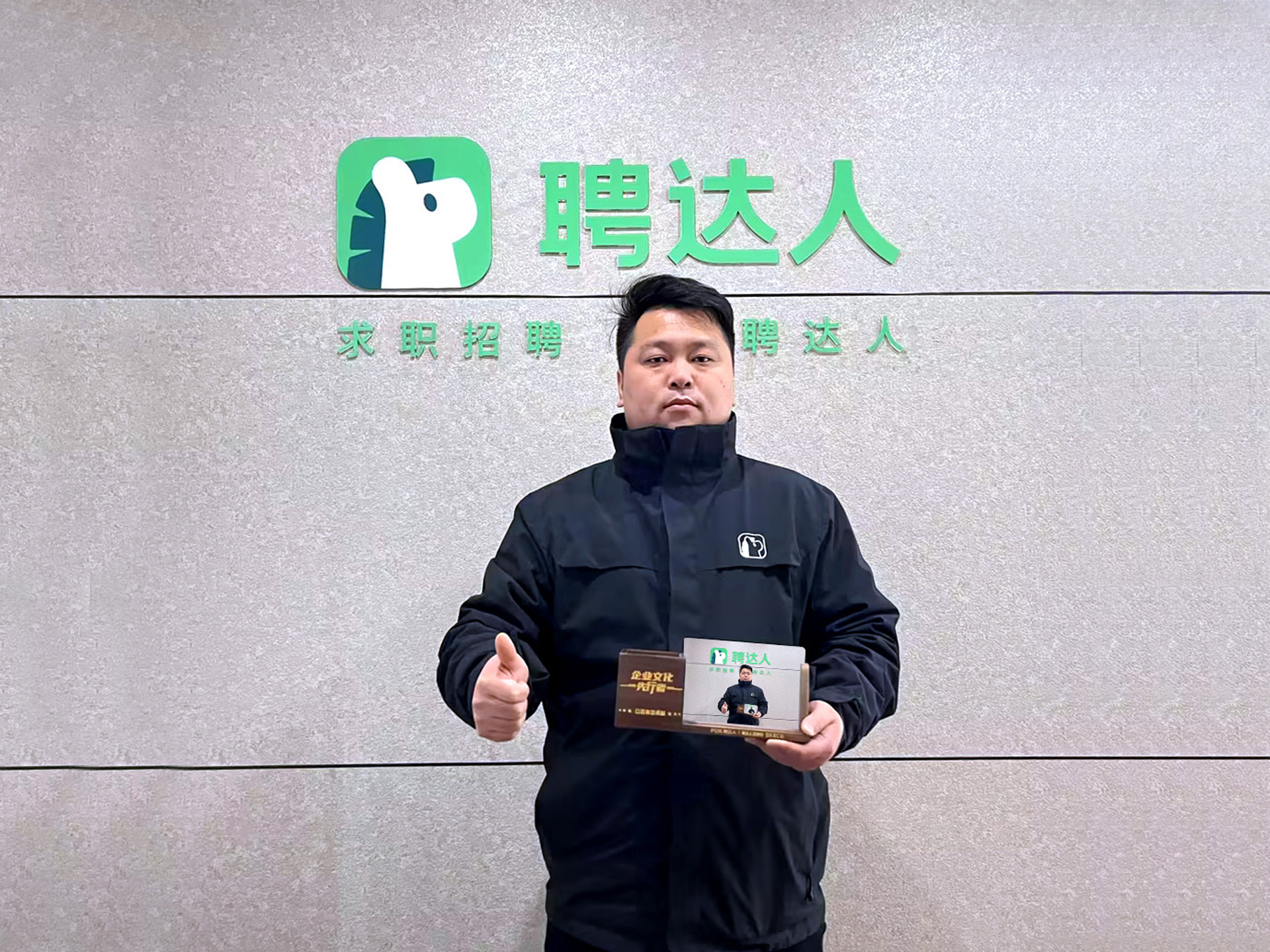 聘達人也為馮喆準備了小禮品——企業文化定制擺臺作為獎品發放。