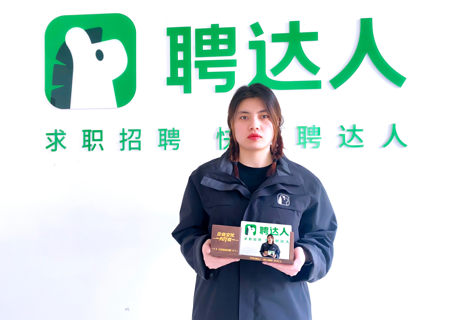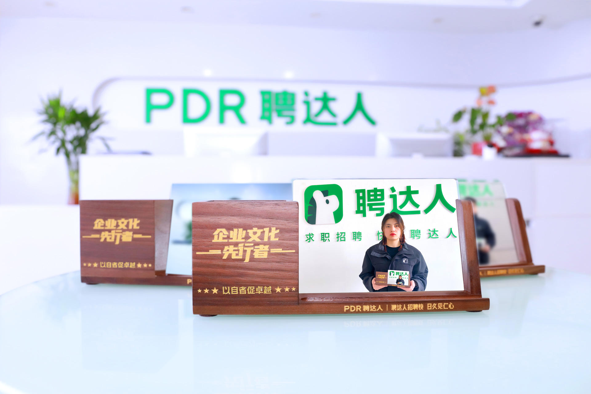 聘達人也為郭紅德準備了小禮品——企業文化定制擺臺作為獎品發放。
