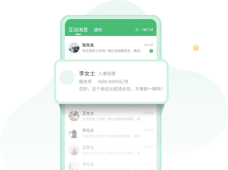 無需添加好友,一鍵在線聊天,直接觸達企業; 交換聯系方式,發送簡歷,你的信息你做主!
